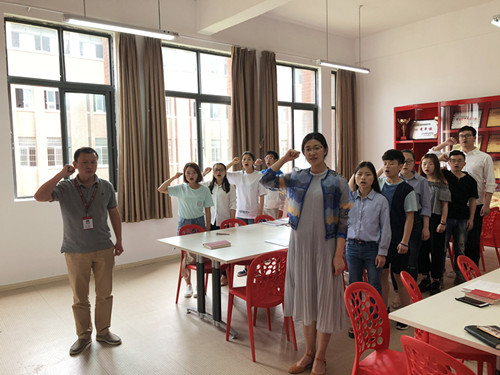 最后,在朱吉韬的领誓下,全体毕业生党员面对党旗重温了入党誓词。