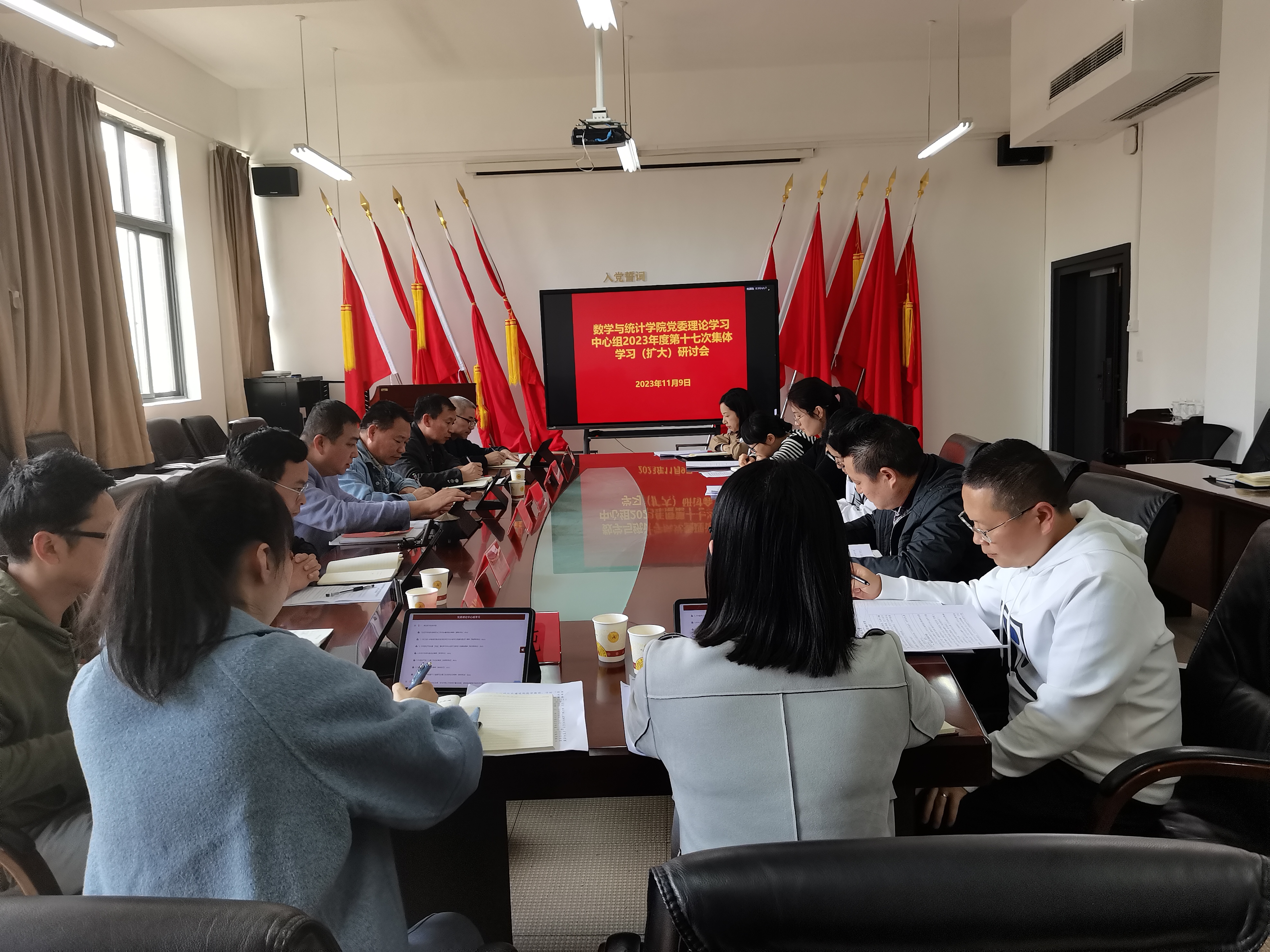 11月9日下午,公司党委理论学习中心组在志学楼331会议室召开2023年度第十七次集体学习(扩大)研讨会,公司党政领导班子、各科室负责人参加,公司党委书记虞帆主持会议。