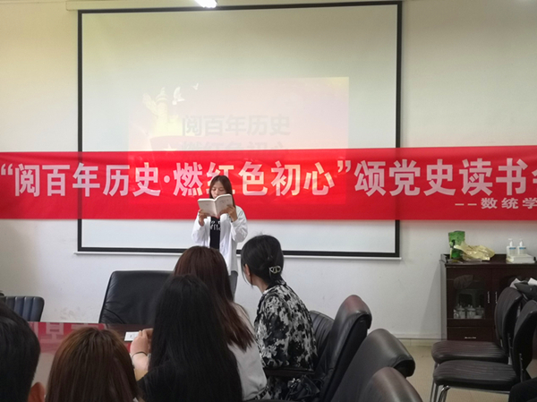 首先,由陶朝英介绍了本次读书会的历史背景以及意义。加强同学们对党史的了解,引发同学们深入了解党史的乐趣。本次读书会由陶朝英同志领学,同学们踊跃站起来分享自己最喜欢的片段以及自己的读书心得体会。全体党员学习热情高涨。