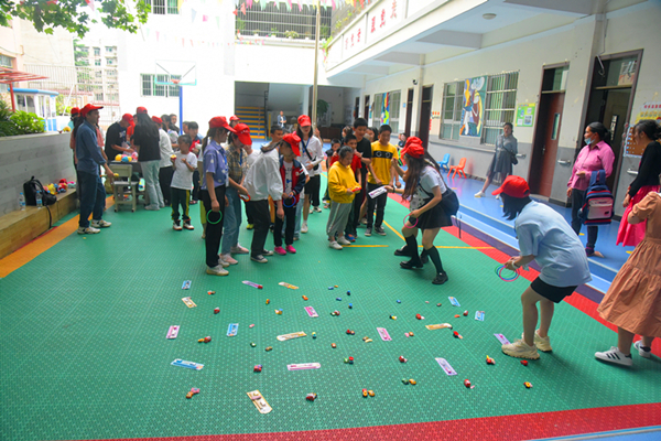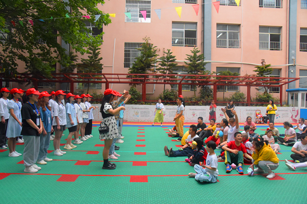 在与小朋友的互动环节中,志愿者们表演了精心准备的节目,《感恩的心》、《我相信》串唱歌曲及手势舞表演。然后带领着小朋友一起开展跳长绳、投篮等小游戏,最后分发小礼物,给小朋友们带来了欢乐。
