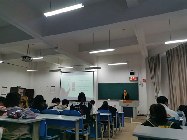 2021年11月23日中午,2019级全体同学在进学楼1-1教室开展“学习贯彻党的十九届六中全会精神”为主题的班会,班会由辅导员陶朝英老师主持。
