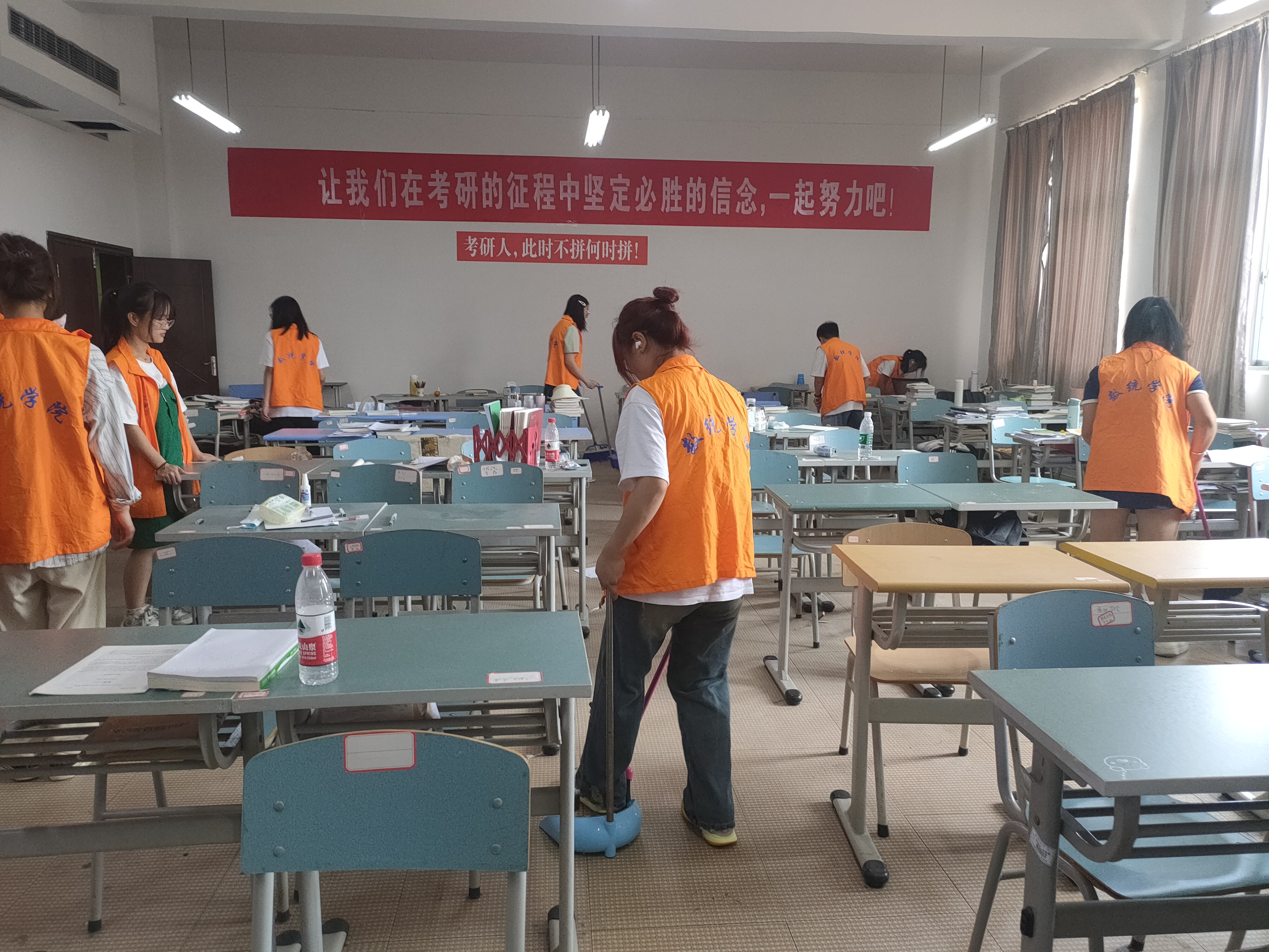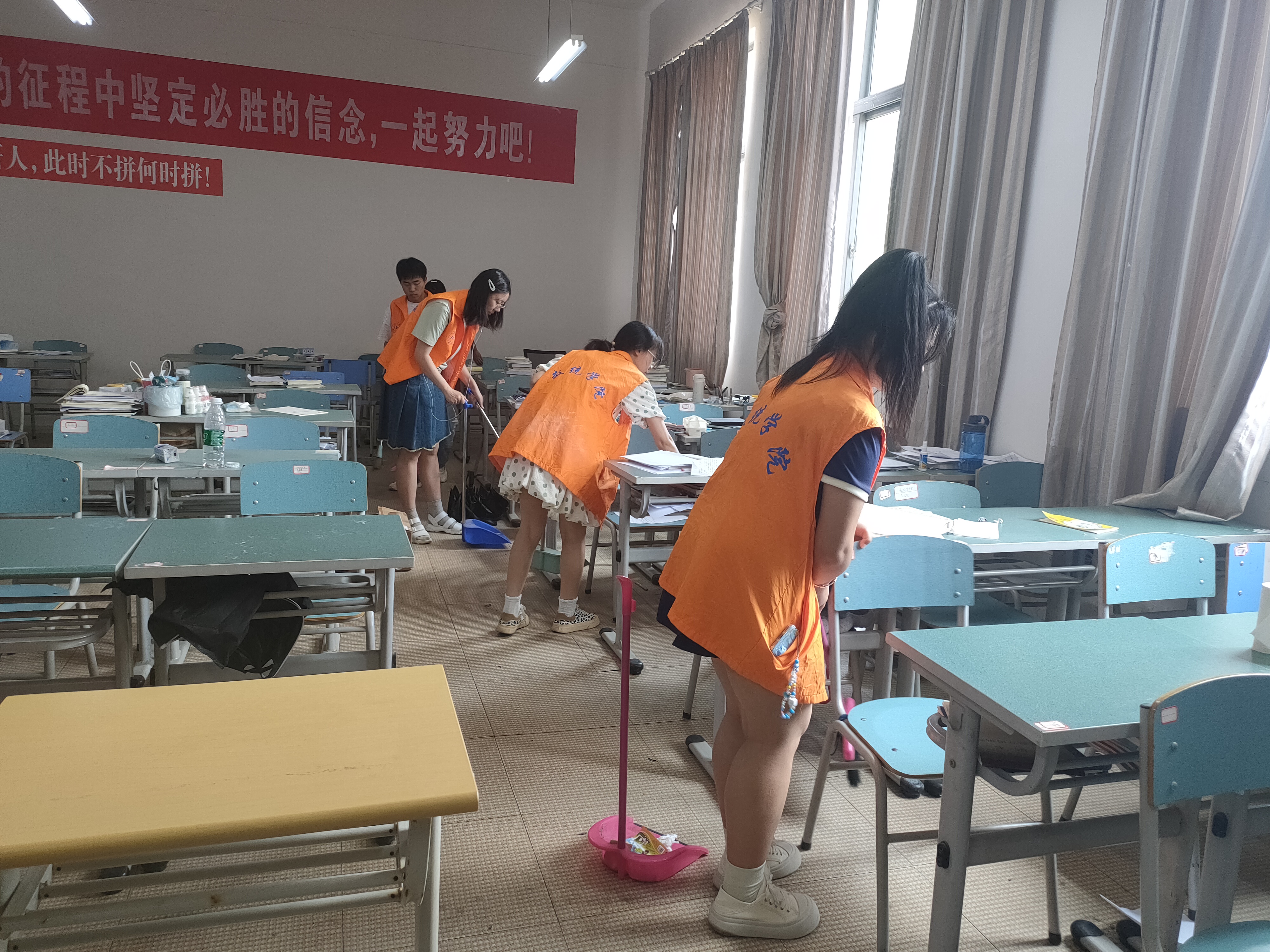 志愿者们分工明确,协同合作,积极投身于劳动,他们以饱满的精神状态和认真的工作态度,有序全面地清理了自修室地面的卫生以及角落垃圾。在志愿者们的不懈努力下,清扫活动取得圆满结束。