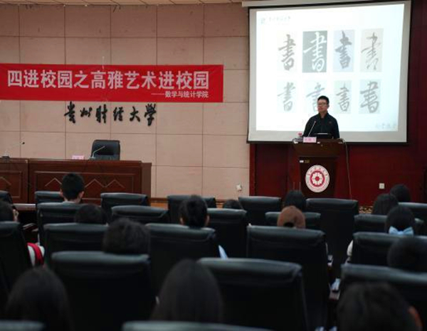 2023年10月17日,由共青团yl23455永利委员会主办、yl23455永利承办的文化传承创新之高雅艺术进校活动在正德楼114展开,本次活动由贵州师范大学书法学系主任国腾飞老师主讲,全校80多名同学参加。