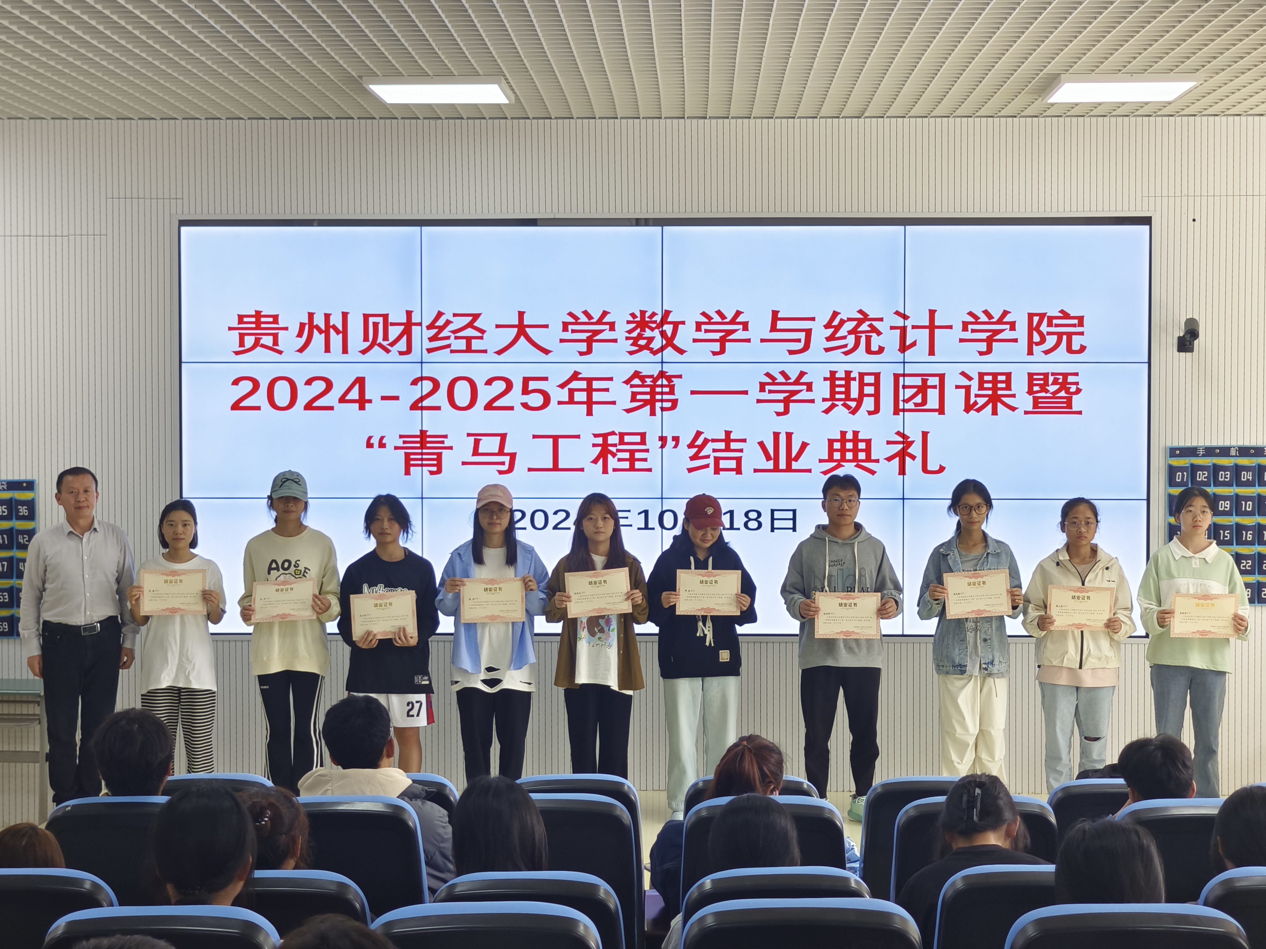 2024年10月18日,2024-2025学年第一学期团课暨“青马工程”结业典礼在进学楼102教室举行。公司党委副书记朱吉韬、公司团委书记贺婧出席,全体学员参加。