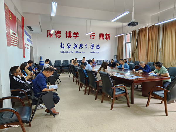 会上,焦建军首先谈了对数学专业博士学位点申报的工作思路和工作部署,根据学科特点和公司定位,从四个方向设置了学位点人才培养领域,并对每个方向领域的骨干人员配置进行了指导。余孝军强调要做好前期准备工作,核对博士学位点申报条件和时间节点,收集各位老师的相关材料。冯大河提出各学科带头人需严格把关材料填写内容,每位教师都需积极参与、支持此项申报工作。随后,参会的老师逐一发言,对申报数学专业博士学位点建言献策,提出了很多有参考价值的意见和建议。听完大家发言后,焦建军做了总结发言,并对申报工作作了进一步的具体部署。