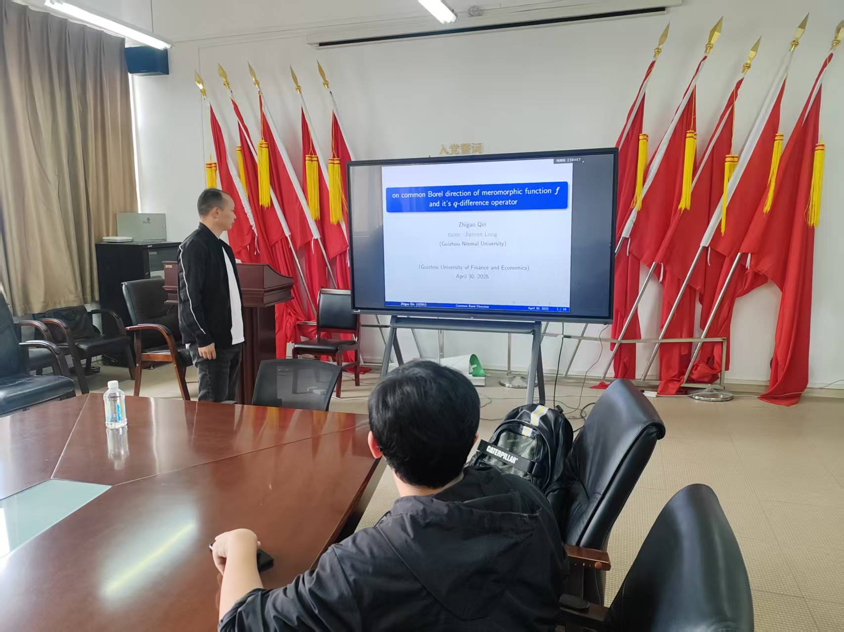 覃博士以“整函数及其差分算子的公共Borel方向”为主题,首先介绍了当前的研究进展、研究难点以及最新的研究成果。其次重点讲述了自己近年来在公共Borel方向方面所做的工作,并指出了一些公开问题及下一步的主要研究方向。
