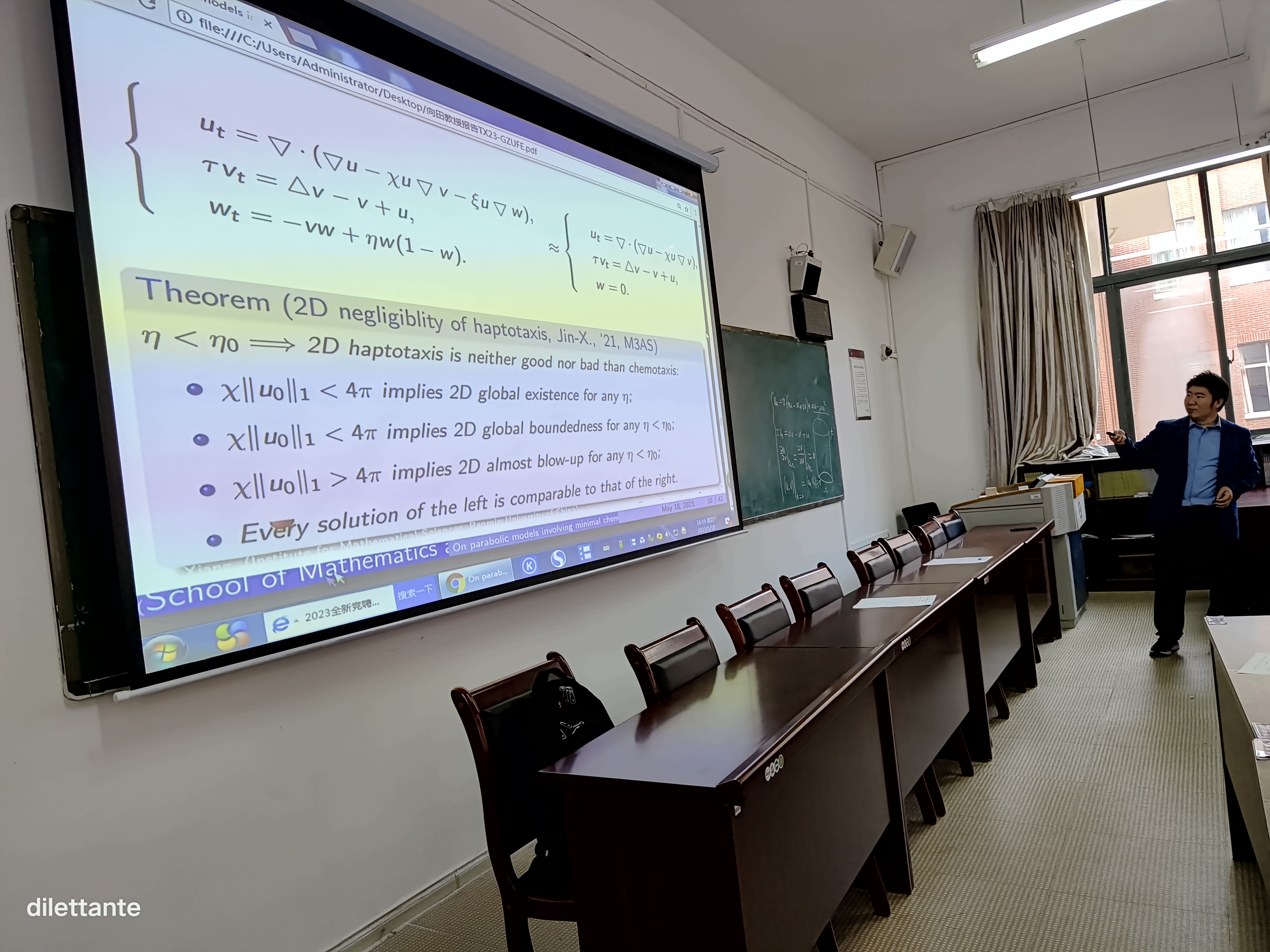 讲座中,向田教授回顾并报告了涉及多环境下的最小化趋化性交叉扩散模型的一些发展,包括(定性的)有界性、爆破、收敛性以及底层模型的模式构成。在报告的同时,还提出了一些相关的开放性问题。