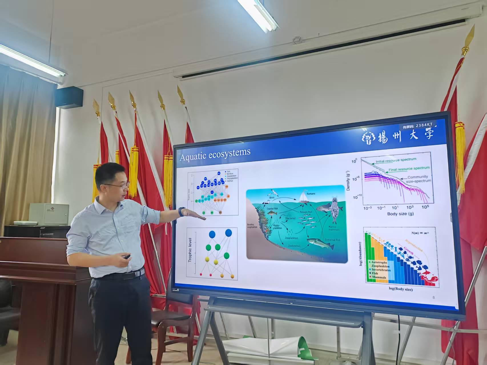 张来以“Perspectives on different food-web modelling approaches from individuals to ecosystems”为主题,简单介绍了水生生态系统,并对休渔期模型、具尺度结构的食物网模型、基于特征的食物网模型、粒径谱模型等几种食物网模型进行了详细的介绍。最后,张来教授结合案例分享了目前取得的最新成果。