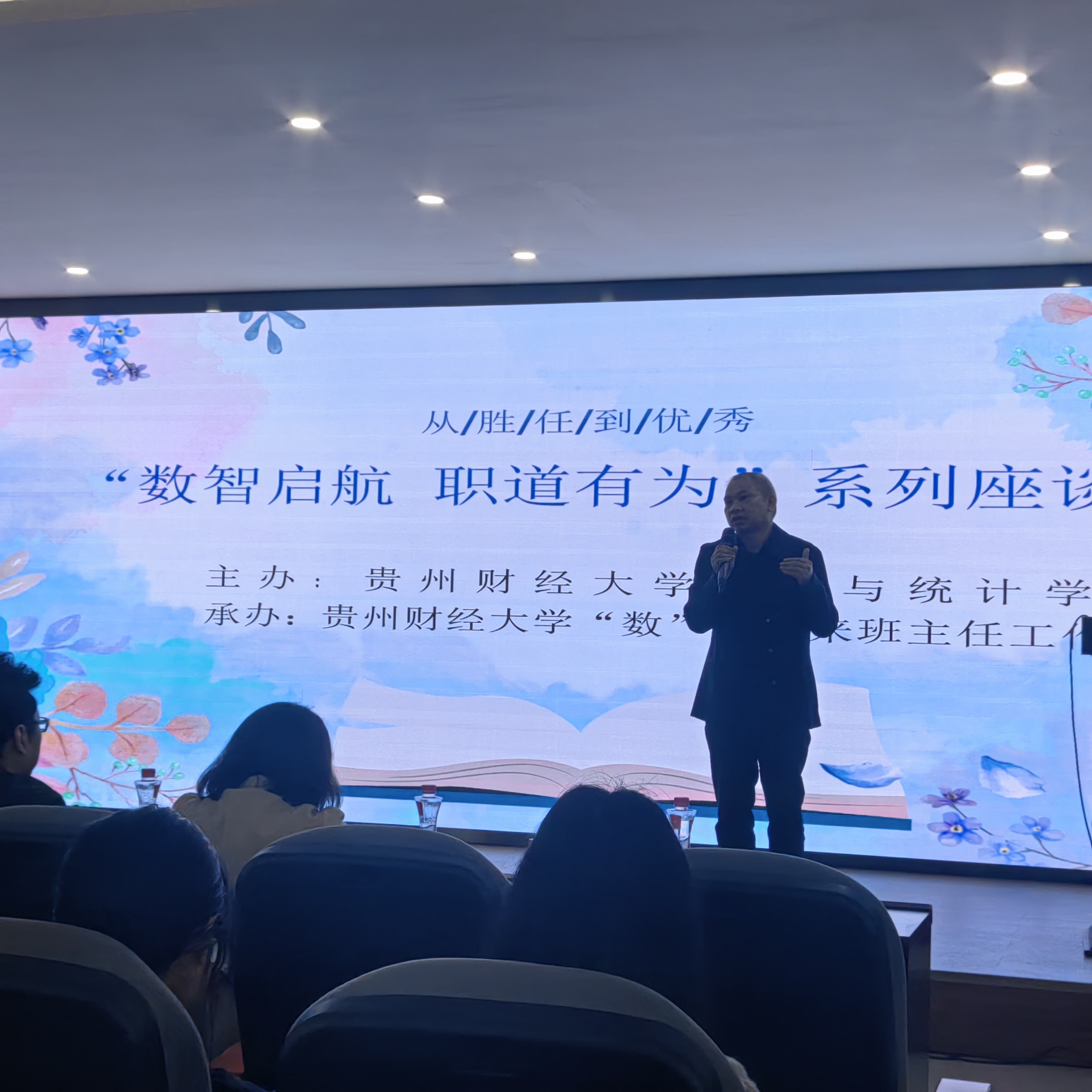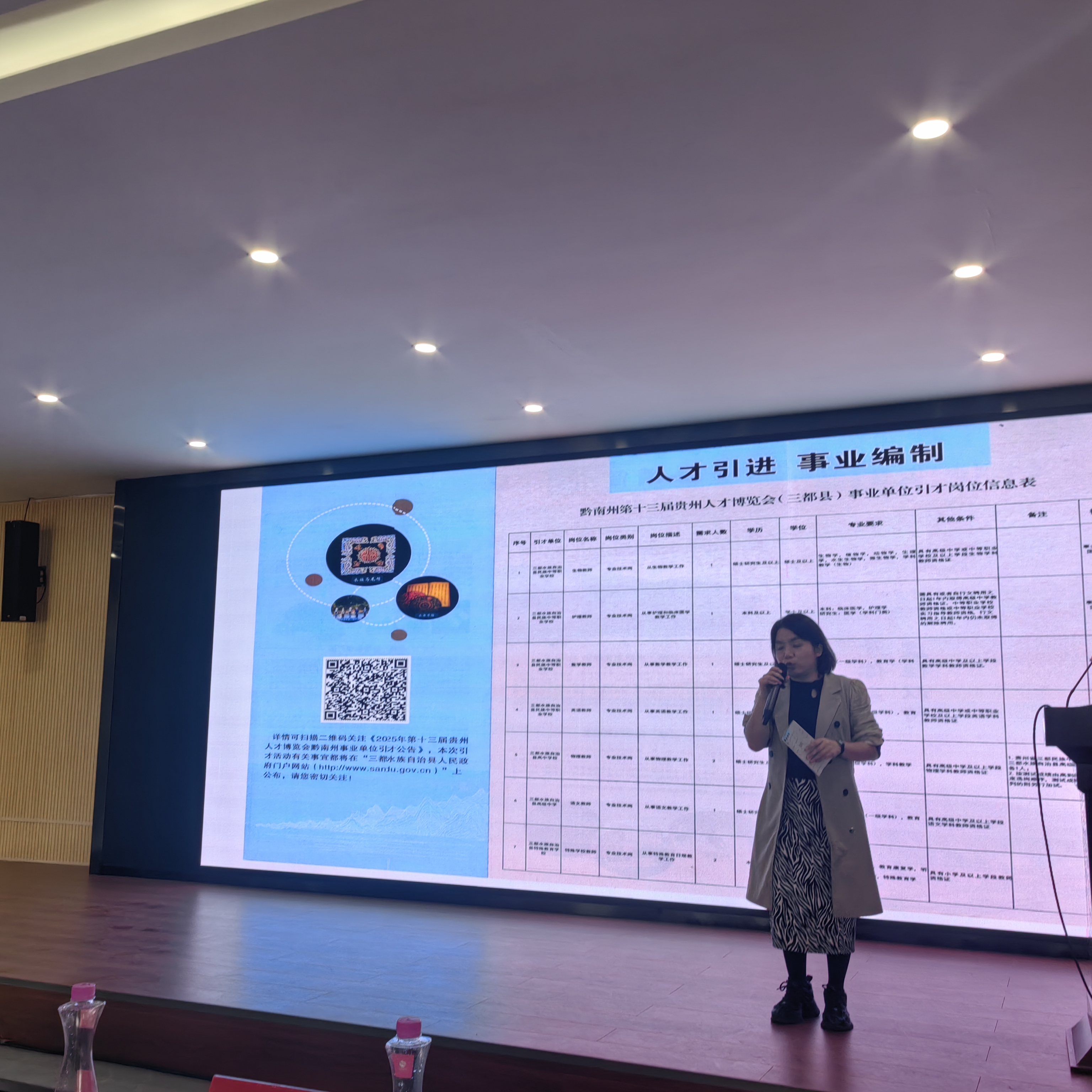 余仁艳详细介绍了贞丰县域的人才引进政策,包括配套的人才津贴、安居公寓以及子女教育保障措施,鼓励员工到企业中“先就业再择业”。黄廷华结合基层教育的实际情况,强调乡村振兴需要青年力量的注入,基层是锤炼品格的沃土,他希望同学们能够从自身出发,真正挖掘并展示自己的个性和特长,让招聘单位了解同学们的优势和潜力。他坚信,人生没有白走的路,每一步都值得铭记。覃胜虹介绍了三都县的县情——全国唯一的水族自治县,对三支一扶、西部计划志愿者聘用进行了详细的实务解读。陈婷婷重点解析了教育系统的就业路径,包括特岗教师、高校引才“绿色通道”等,并呼吁同学们考取教团队格证以拓宽职业选择。