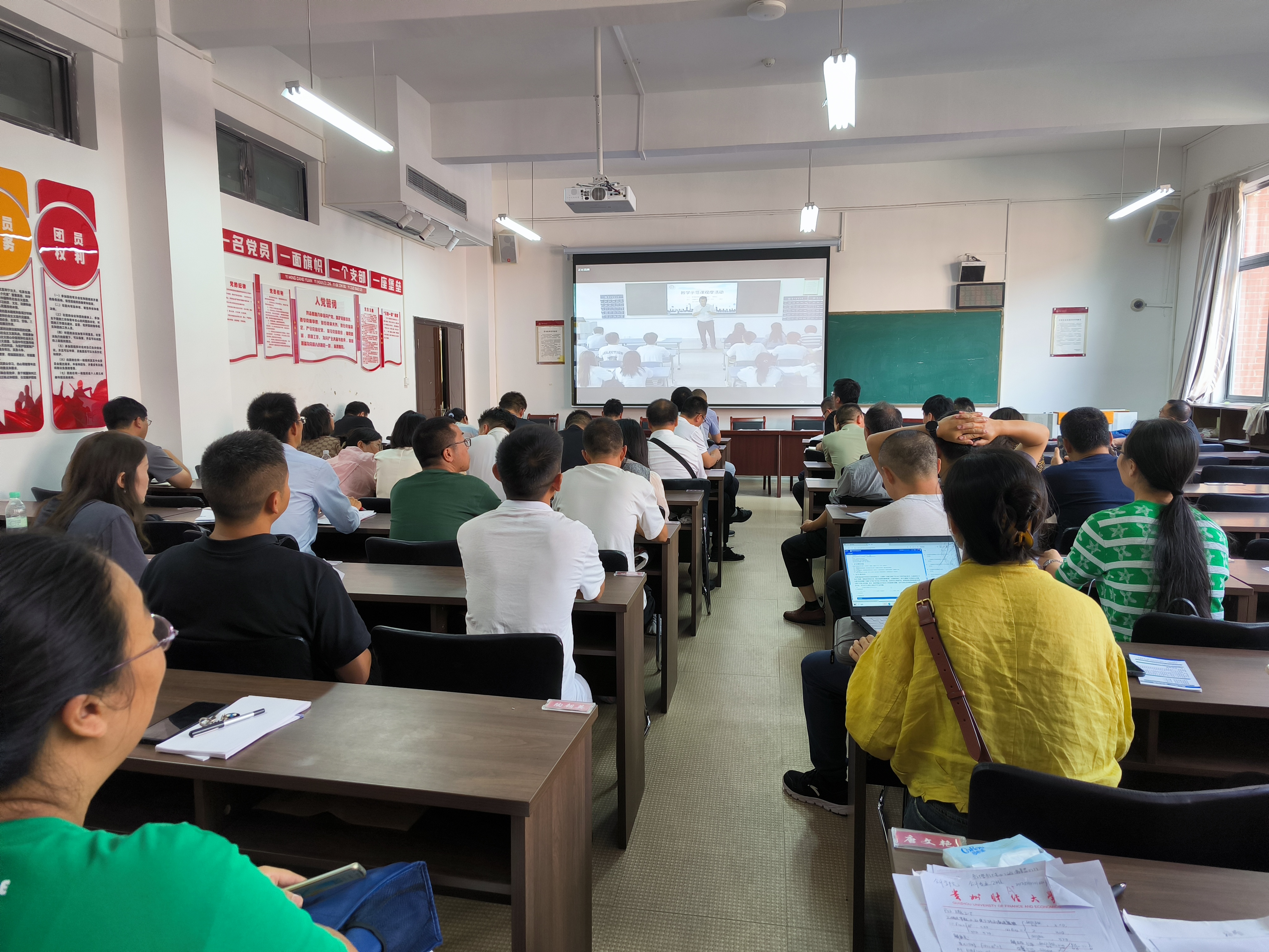 活动当日,教师们集中观摩了由管理科学与工程公司胡贤旭博士主讲的《数字地图学》课程。授课过程中,胡贤旭的教学安排条理清晰,课堂互动设计充分,展现了扎实的教学功底与丰富的教学经验,为教师提供了直观的教学参考。