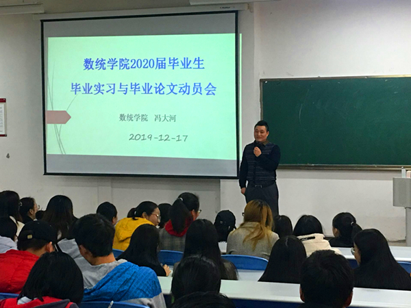 随后,冯大河对本科生毕业论文的写作做了详细指导,详细介绍了毕业论文(设计)的写作规范,写作格式,要求同学们严格按照论文的格式要求对论文进行写作,并对于摘要、参考文献等员工容易出现错误的地方进行了着重讲解。