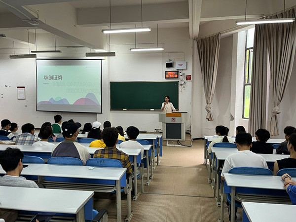 动员会之后,华创证券公司讲师刘思思为同学们详细介绍了其公司的“扬帆计划”,该计划是为进一步落实《国务院办公厅关于进一步做好高校毕业生等青年就业创业工作的通知》及全国稳住经济大盘电视电话会议精神,由共青团中央青年发展部、中国证券业协会、中证机构间报价系统股份有限公司联合开展,其目的是持续推进投资者教育纳入国民教育体系,充分发挥金融机构在服务老员工就业方面的积极作用,增强老员工及社会公众的投资风险意识及金融素养。同时,加大吸收青年人才资源的力度,努力增加高校毕业生就业创业机会。