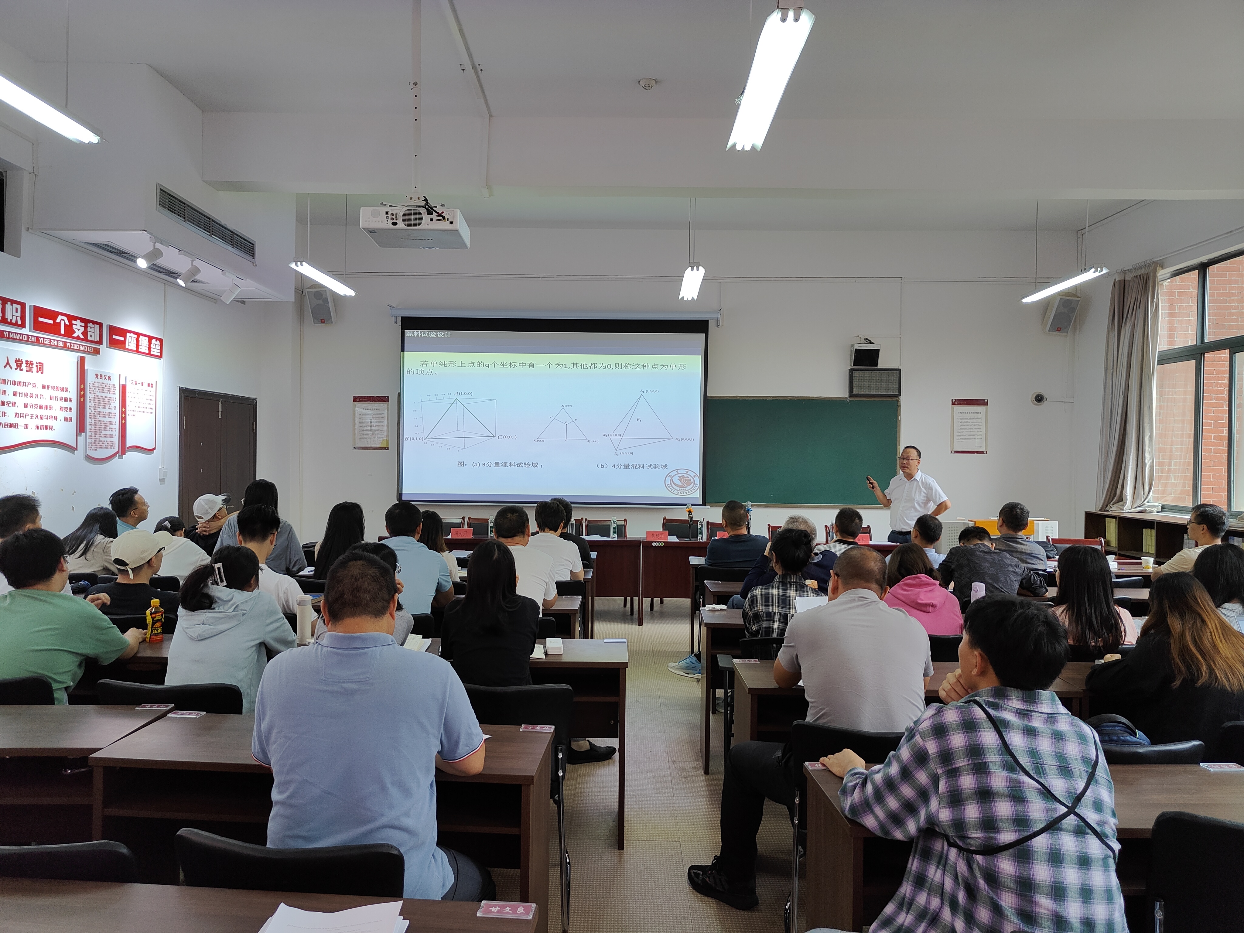 在专家报告阶段,凯里公司李光辉教授、贵州大学吴奎霖教授、贵州民族大学黄介武教授作了三场精彩的报告。李光辉教授以“混料试验设计理论的新进展”为题,阐述了以混料格点设计的相关理论为基础,研究解决多约束混料系统中的各类复杂设计问题,并将其应用于实际问题中。吴奎霖教授以“三区域的平面退化分段线性微分系统的动力学”为题,阐述了一个平面连续分段线性系统的退化子系统,证明了该系统至多有两个极限环,并且从中发现了一些新的分支现象。黄介武教授则从“如何写好科研项目申报书”入手,对各类基金项目申报选题、申报书撰写、存在的主要问题、申报经验与体会、其它相关注意事项等方面进行了分享。三场专家报告分别由冯大河教授、张千宏教授、段星德教授主持。
