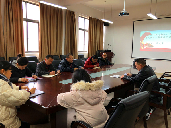 12月5日中午,公司经理焦建军为行政教工支部全体党员上“不忘初心、牢记使命”主题教育专题党课。