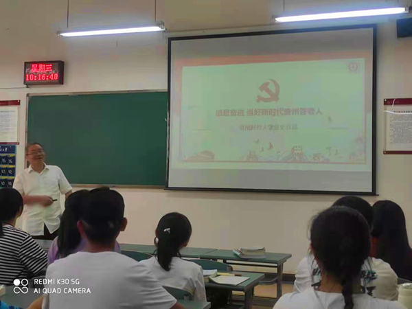 6月9日上午,​yl23455永利副经理余孝军做题为“感恩奋进,当好新时代贵州答卷人”的党史学习教育宣讲,2021级部分员工聆听了宣讲。