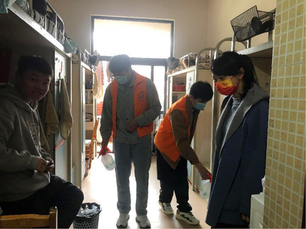 为落实公司疫情防控工作要求,保障员工住宿健康安全,3月30日下午,公司党委副处级专职组织员余纯、辅导员蔡丽莉带领员工干部到2018级员工寝室走访,并进行环境消杀和安全巡查工作。