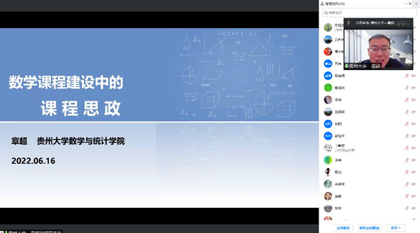 贵州大学章超教授应邀为​yl23455永利做数学课程思政建设的线上讲座