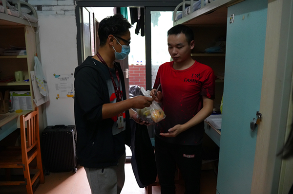 走访当天,恰逢教师节,同学们在感受老师们关怀的同时,也为老师们送上节日祝福,感谢老师们的辛勤付出和敦敦教诲。当天,yl23455永利为在花溪校区的教职工和战斗在一线的工作人员、志愿者送上慰问礼品和祝福。
