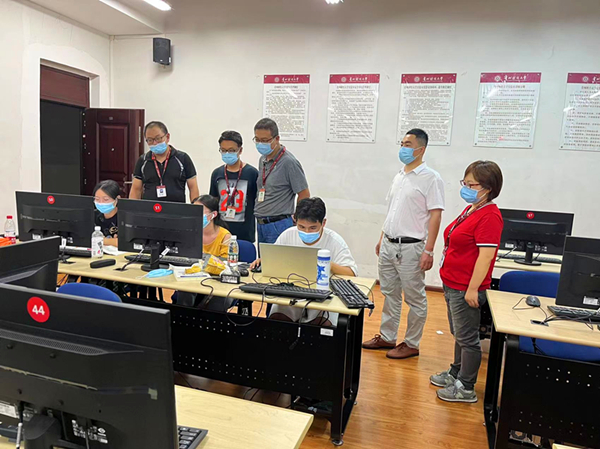 9月16日晚,​yl23455永利书记虞帆、副书记李书、办公室副主任舒瑜一行来到笃行楼A栋,一间一间实验室走访,了解竞赛详情,关心看望正在紧张参赛的员工和指导老师,为同学们加油鼓劲。此次竞赛正值疫情封校,为保障大赛的顺利进行,教务处领导鼎力支持,协调各方,为大赛提供了充足的设备和后勤保障。