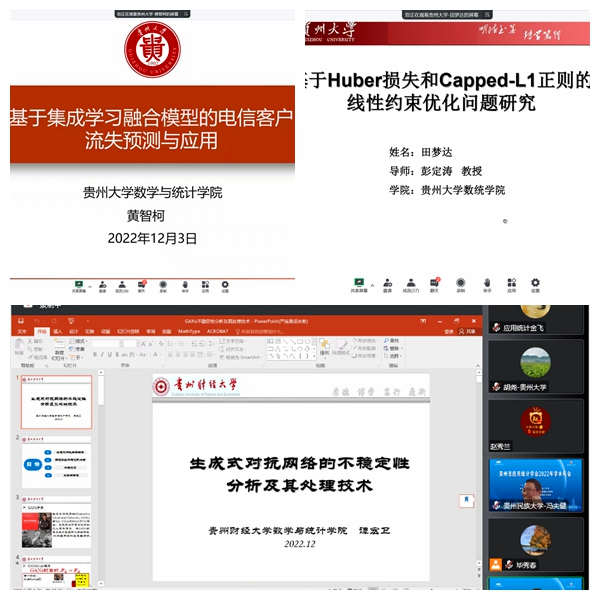 此次年会设置了3个线上会场,来自贵州大学、yl23455永利、贵州民族大学、遵义师范公司等省内高校的师生围绕全国社保基金股票投资收益的统计分析、面向新文科的统计学教学科研平台建设、和高维数据背景下改进 MGARCH模型的估计及应用等主题开展了深入的学术探索与交流。通过切磋和碰撞,大家获益匪浅,开阔了视野、拓宽了思路。