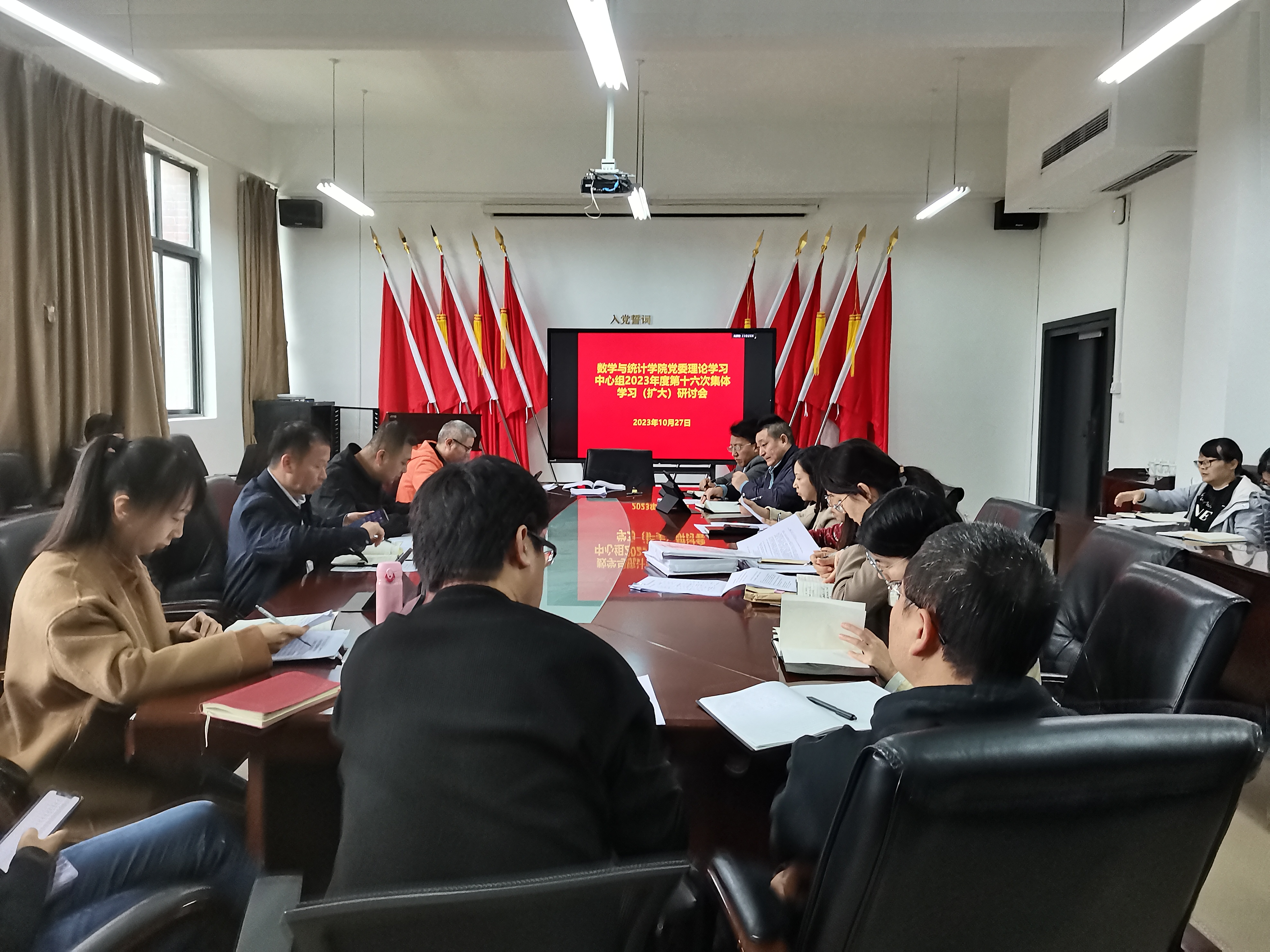 10月27日上午,公司党委理论学习中心组在志学楼331会议室召开2023年度第十六次集体学习(扩大)研讨会,公司党政领导班子、各科室负责人、各系部主任参加,公司党委书记虞帆主持会议。