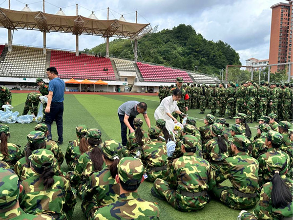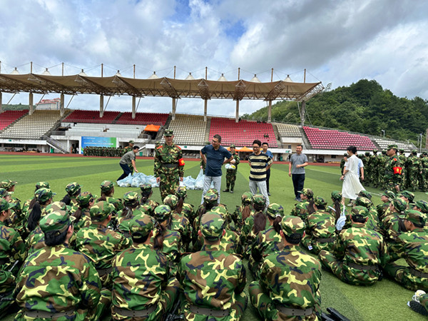 虞帆代表公司向参训的2022级同学致以亲切的问候,他称赞同学们能吃苦、肯训练,鼓励同学们再接再厉,严格训练,圆满完成军训任务。