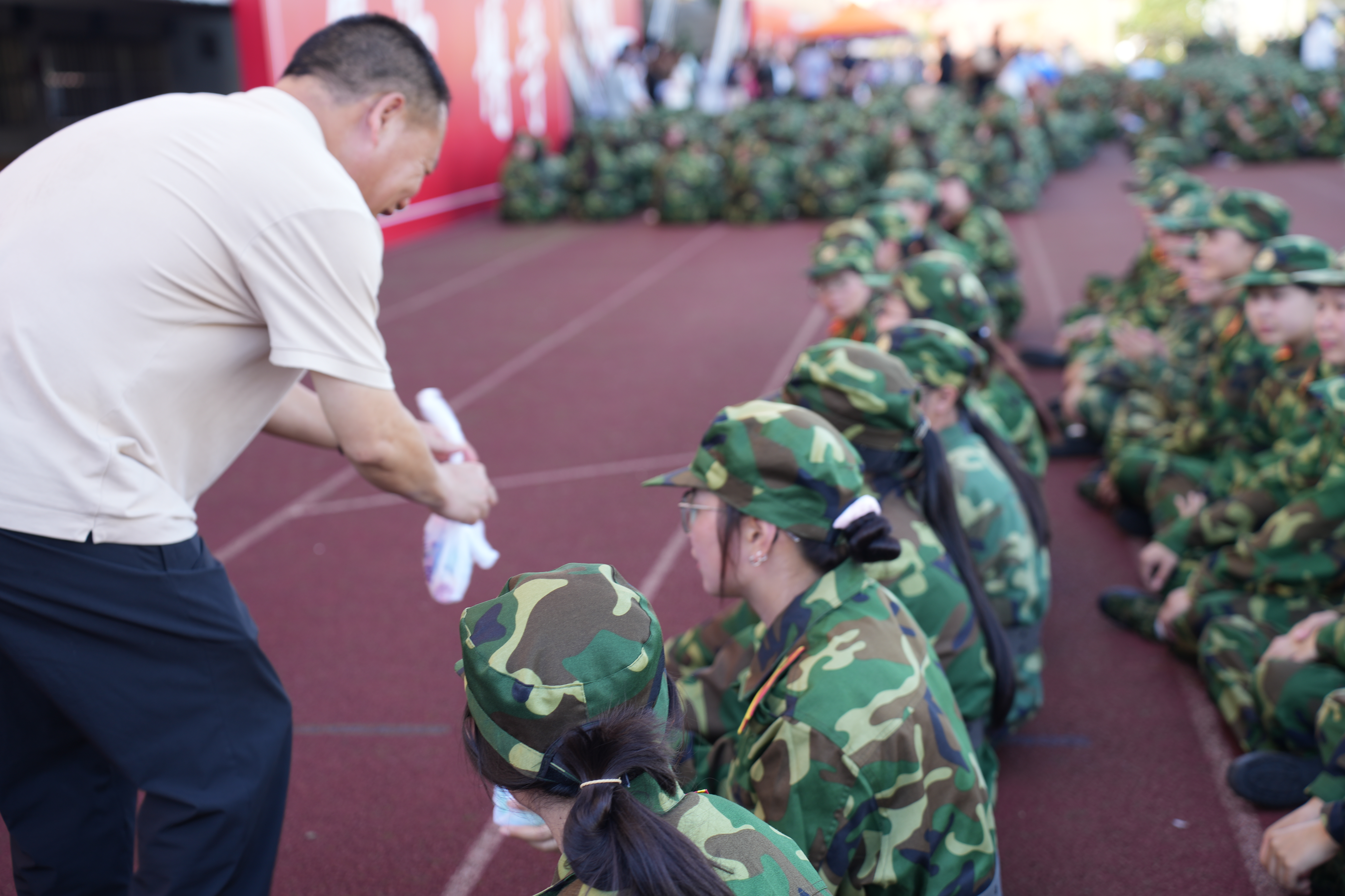 活动伊始,李书代表公司全体领导发言,表达了对新生们的关心和祝福,赞扬了新生们在军训中所展现出的坚韧不拔的优良品质。随后,院领导们向24级新生送上水果、零食等,并表达了对新生的鼓励以及对教官的由衷感谢。接着开始精彩的节目表演。