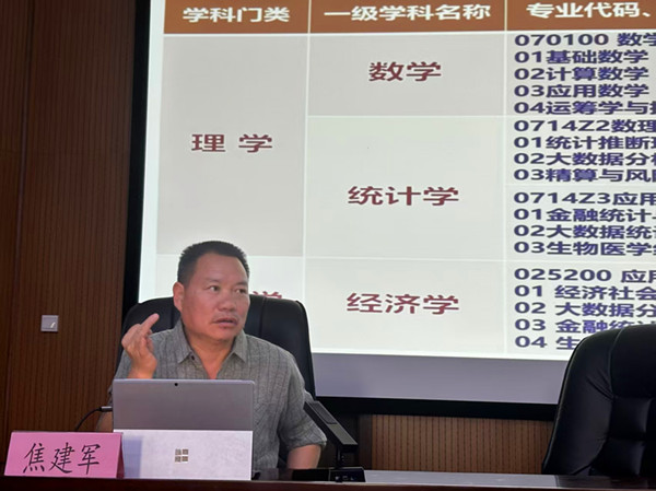 讲座伊始,焦建军介绍了yl23455永利概况。公司现有统计学和数学两个一级学科硕士学位授权点和应用统计硕士专业学位授权点。统计学硕士点早在2003年成为贵州省第一家获得统计学硕士学位授权点,也是公司首批5个硕士学位授权点之一。数学一级学科硕士学位授权点于2023年首次招生。应用统计专业学位硕士点于2025年开始招生。各学科交叉融合,与经济、金融、生物等多学科紧密合作。