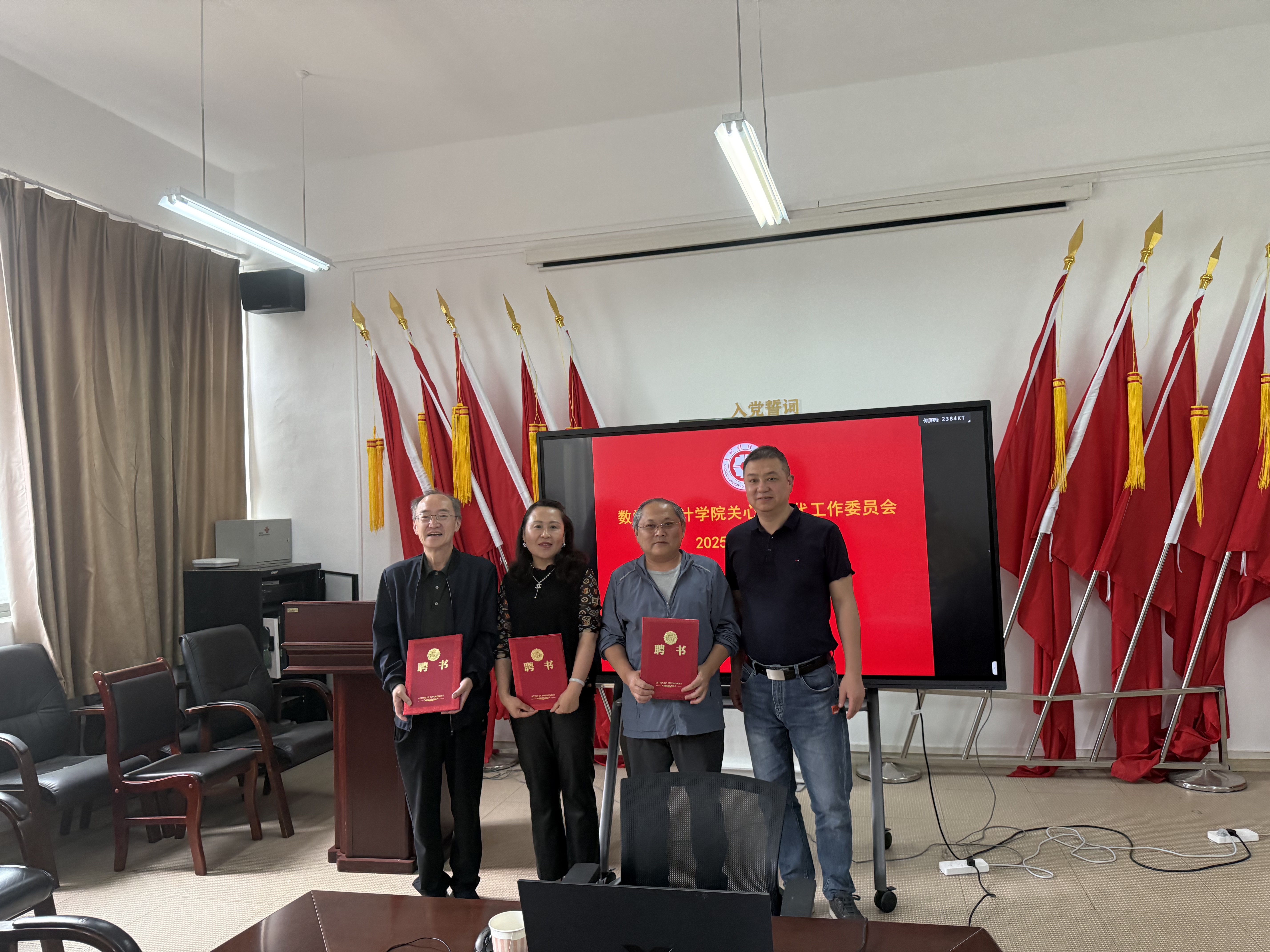 公司党委书记虞帆向张康宁、朱晓铭、李萍三位退休老同志颁发了公司关工委副主任聘书。三位老同志作了热情洋溢交流发言,表达了参与到公司关工委工作,继续为数统学子的成长成才发光发热的赤诚之心。