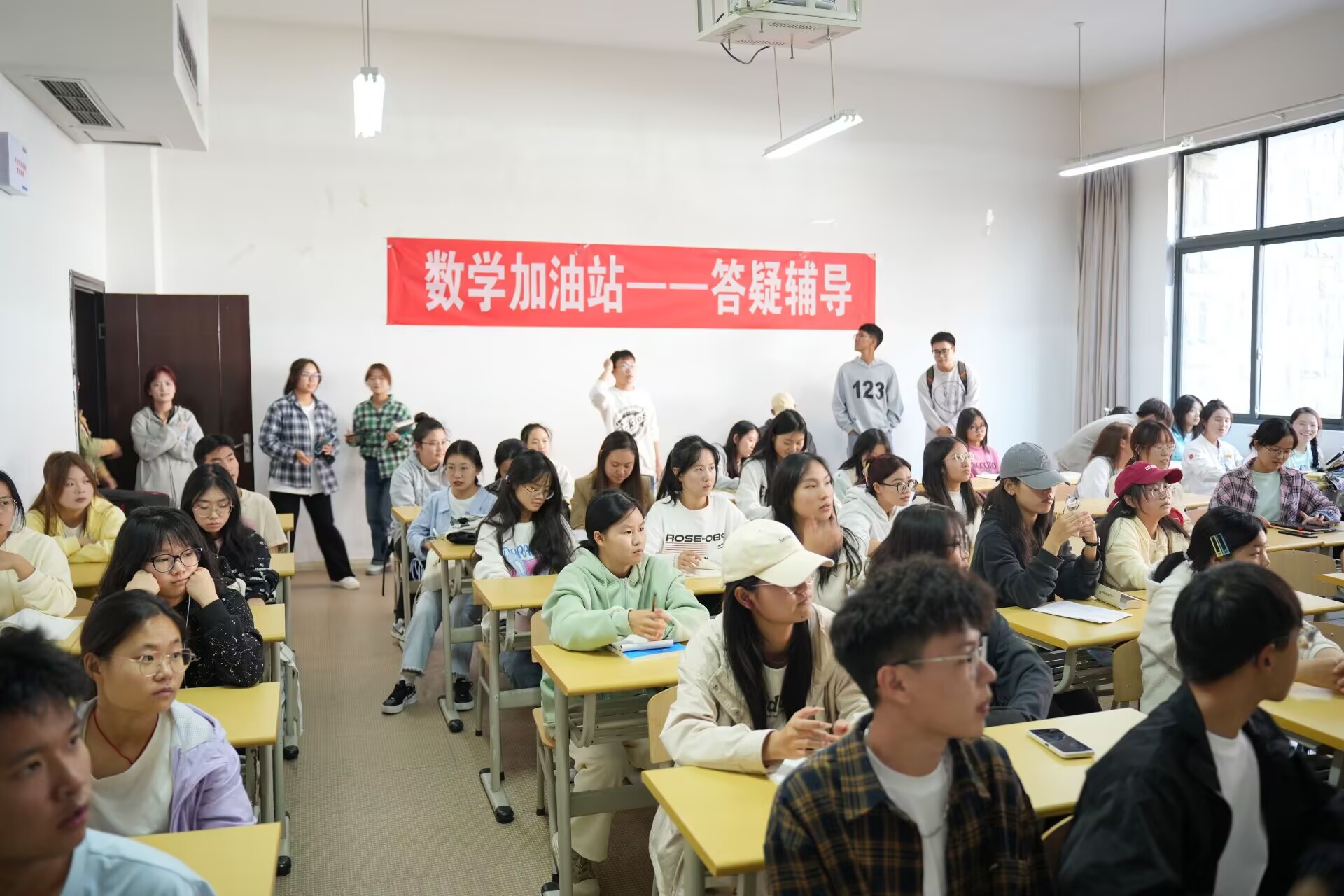2024年10月25日,yl23455永利在勤学楼1-8教室开展第27期“数学加油站”活动。本期主题是针对大一的高等数学进行答疑辅导,由yl23455永利研究生魏文杰、陶军、余跃楷、高冰颖、王耀民、罗泽荣6人主讲。
