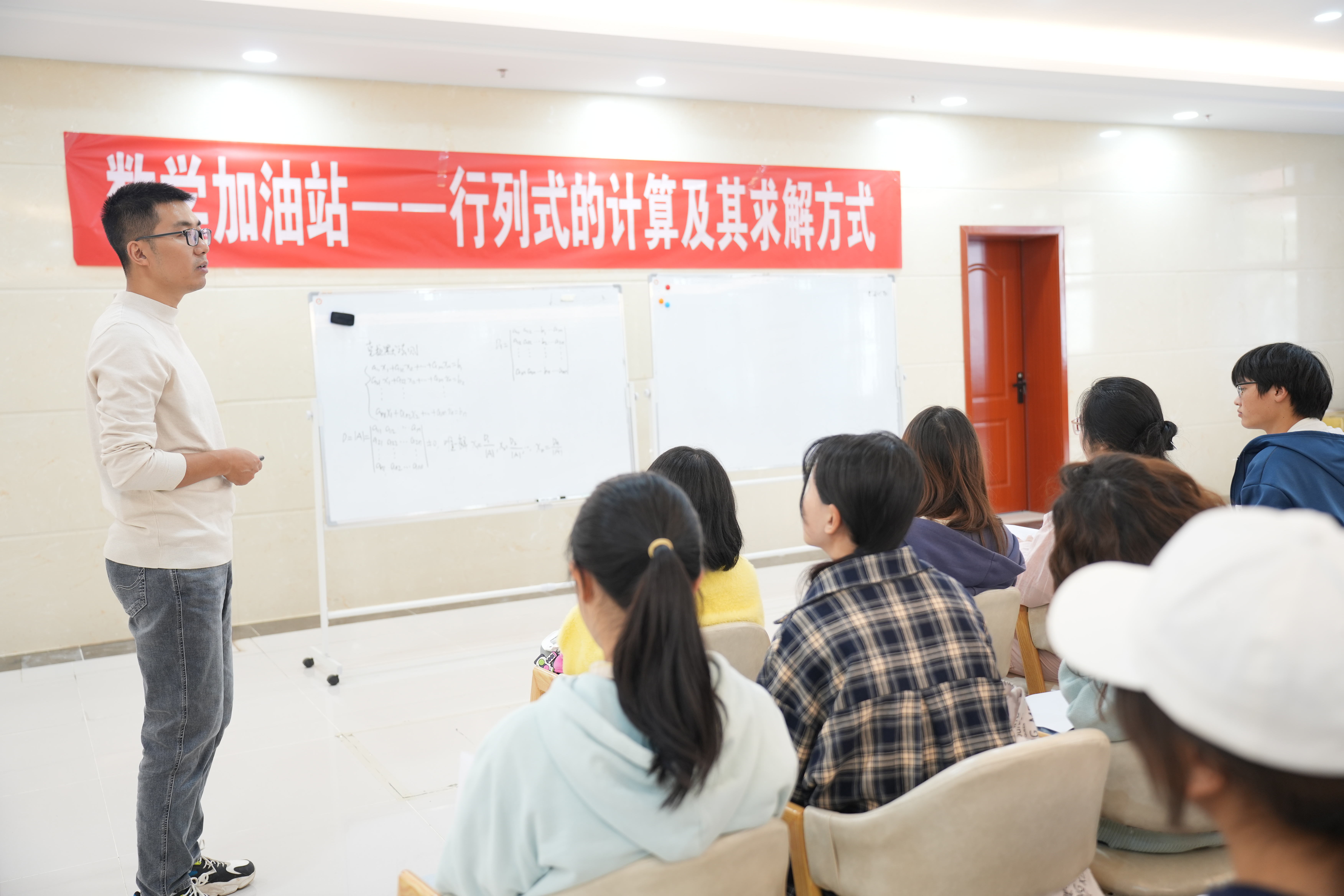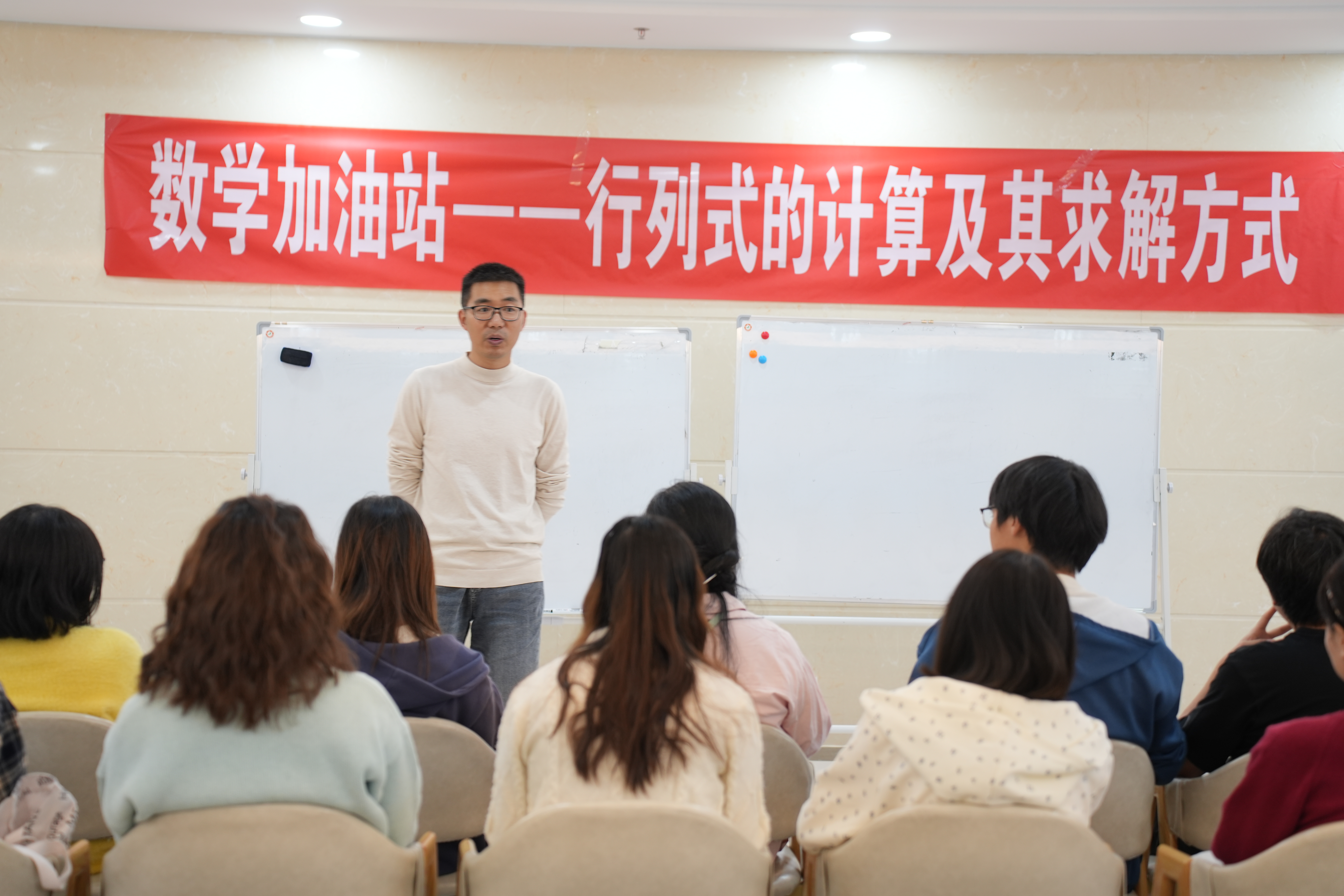 2024年10月29日,yl23455永利在员工活动中心一楼大厅开展“数学加油站”活动。本期主题是行列式的计算及其求解方式,由yl23455永利常佳佳老师主讲。