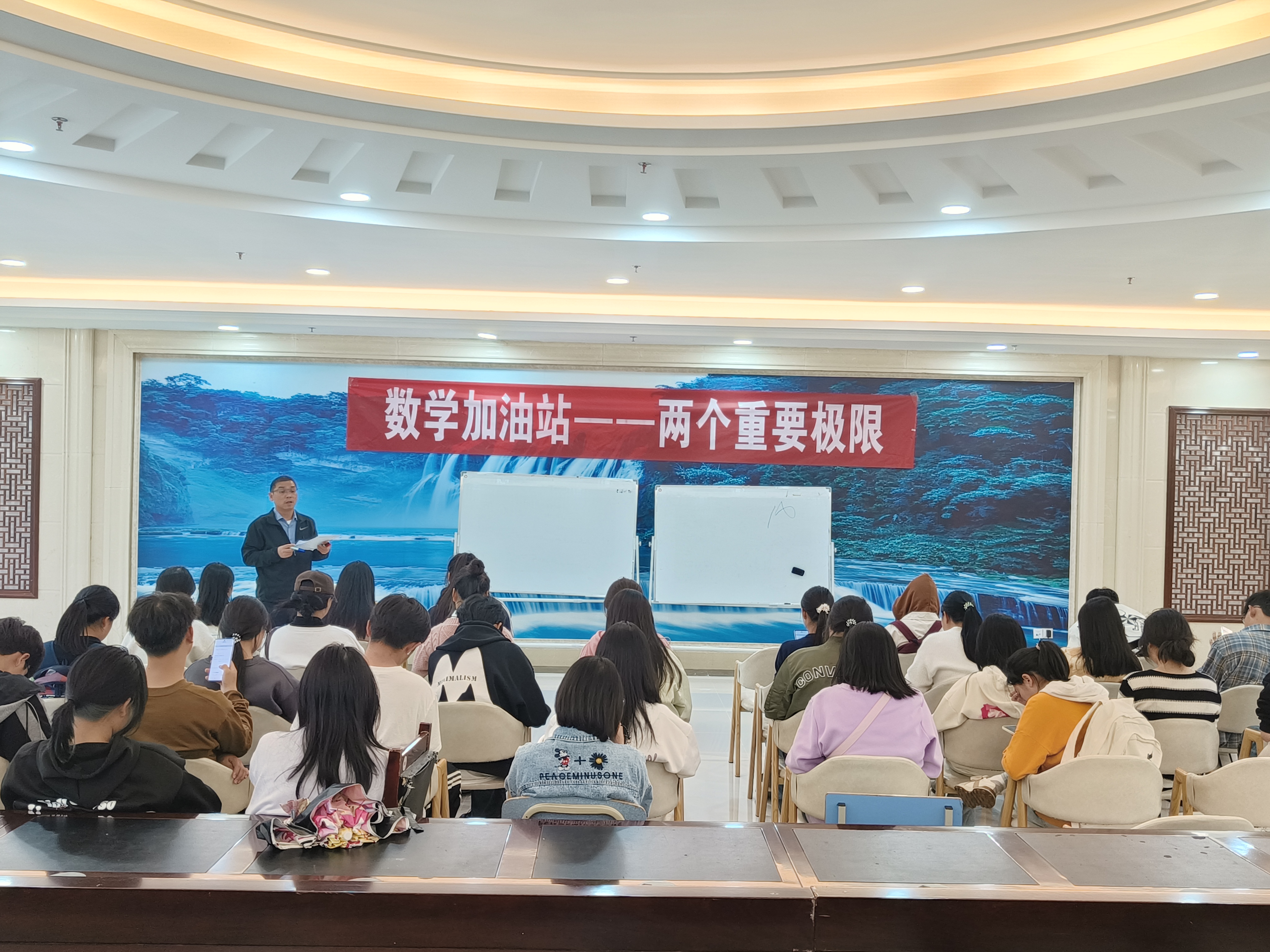 2024年11月12日,yl23455永利在员工活动中心一楼大厅开展“数学加油站”活动。本期主题是两个重要极限,由yl23455永利周爱仁老师主讲。